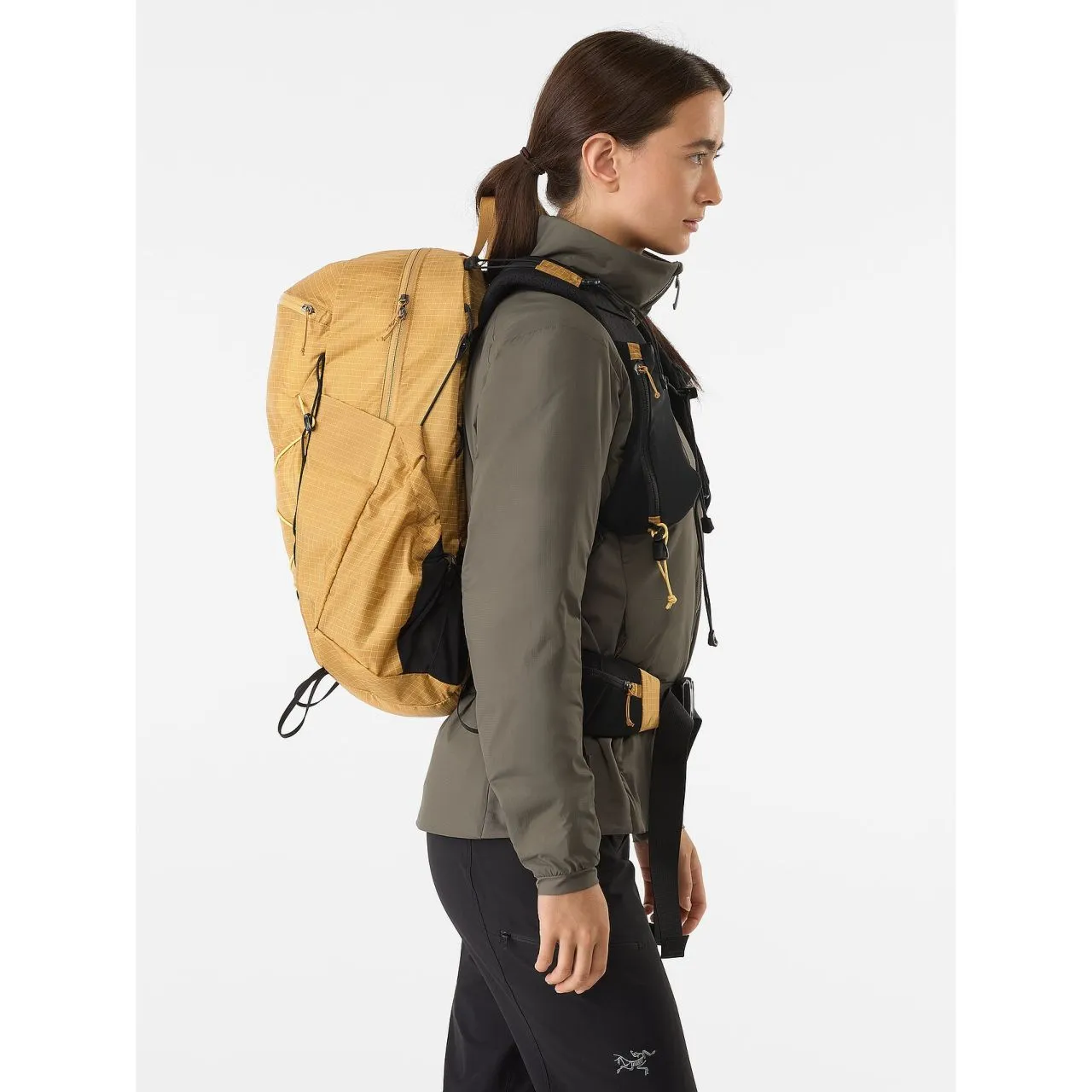 Versatility is freedom. Sized right for ultralight overnights and extended day trips, the Arc’teryx women’s Aerios 30 goes where you want to go and holds exactly what you need. Hydration compatible, the 30L main compartment handles trail essentials and camp gear, and the breathable AeroForm back panel, padded hipbelt, and adjustable harness combine for a comfortable carry. Multiple external pockets are secure and accessible, and the fabric’s liquid crystal ripstop provides excellent durability for minimal weight.