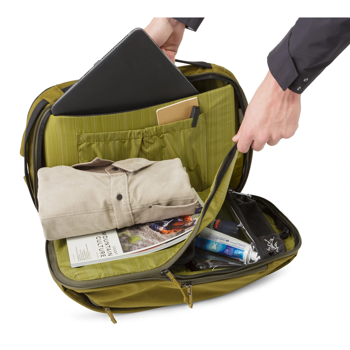 The Blade 20 from Arc’teryx is a 20 liter laptop and tablet backpack with a clamshell design that opens wide for full access to the main compartment, and a side zip provides quick entry. Laptops up to 15 inches are protected in a dedicated padded compartment, and an additional sleeve secures a tablet. This versatile travel pack can be used as a briefcase, backpack, or suitcase.