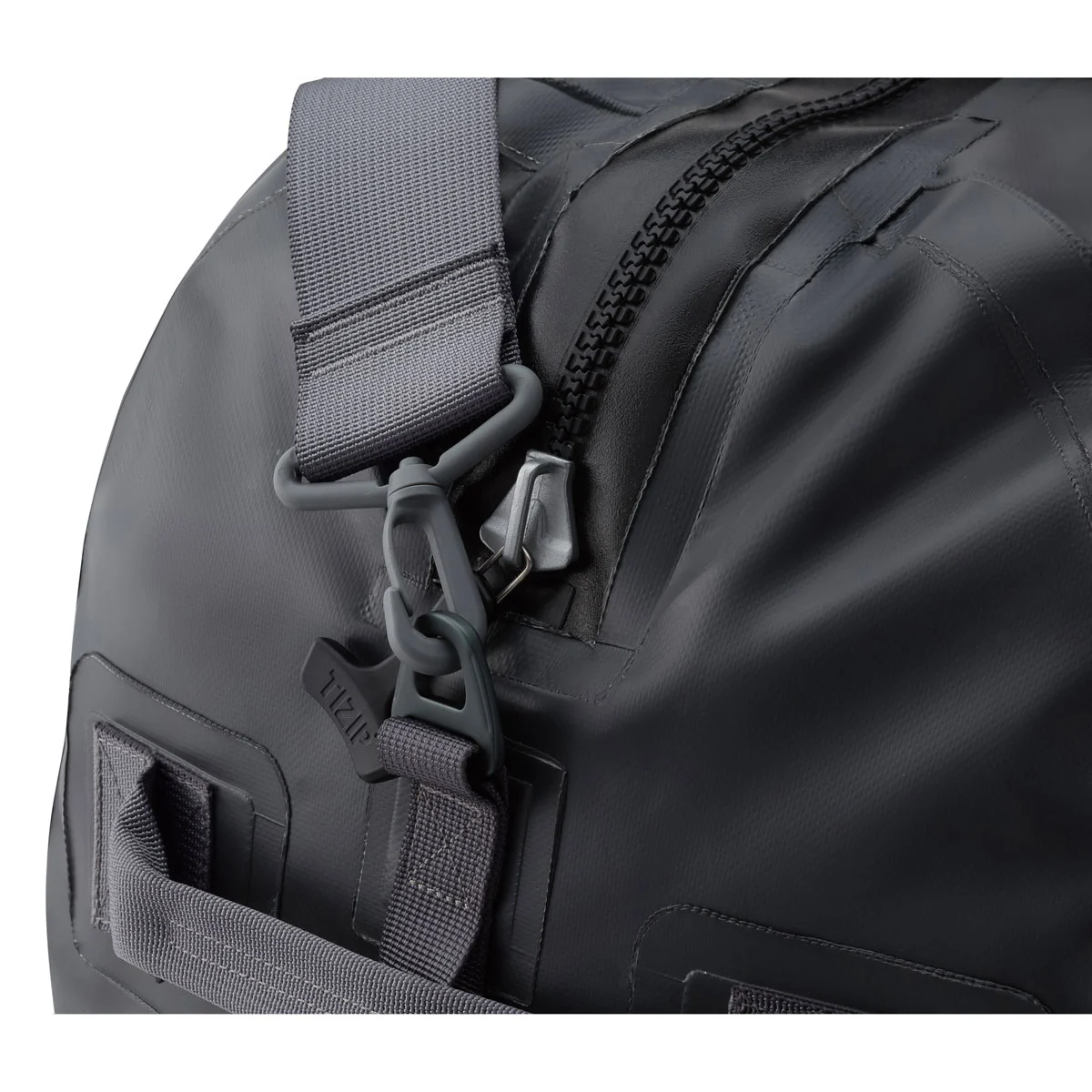 • Zip the duffel and hook the aluminum fasteners through the webbing loop to cinch down the bag for a more secure closure.