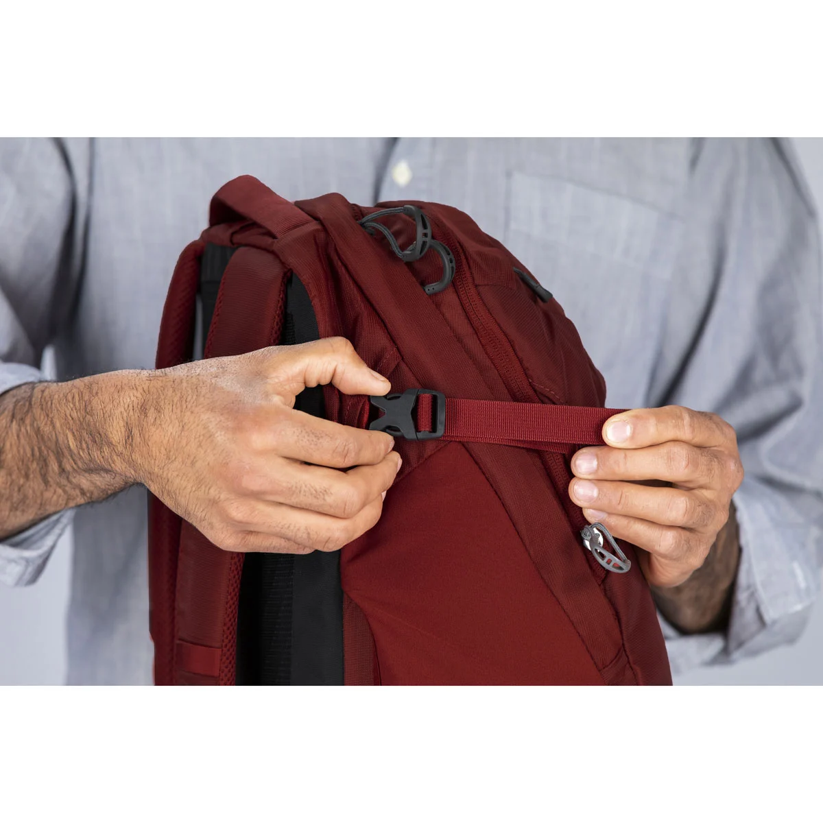 • Upper side compression straps with tuckaway garage