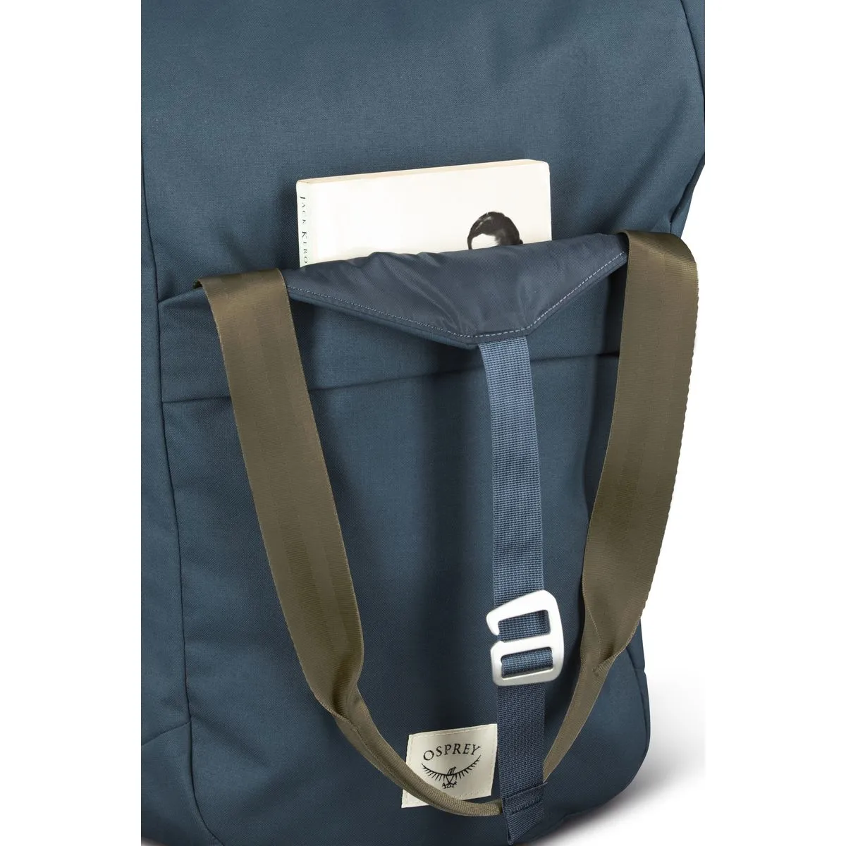 Beautifully crafted and designed for day-to-day life, the Osprey Arcane Tote Pack fits and functions in a wide variety of scenarios. Load it up with the day’s necessities and this pack is just as comfortable commuting to the office as it is catching up with a friend over a pint. Tuckaway tote straps and harness allow for two comfortable carry styles while durable certified recycled fabrics withstand everyday abuse. This tote pack includes a built-in self-locking hook to prevent someone from walking off with your daily essentials. The Arcane Tote Pack is made from 13.5 plastic bottles.