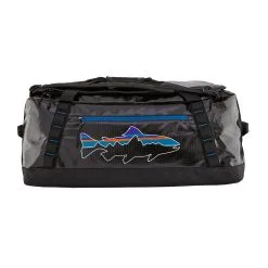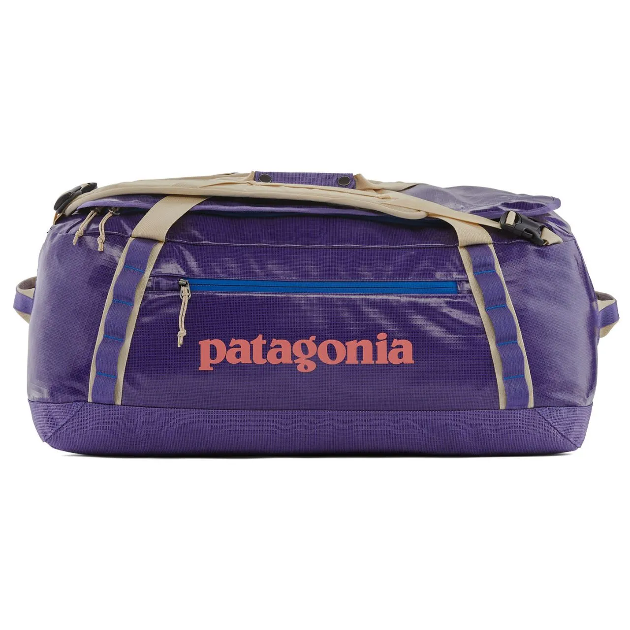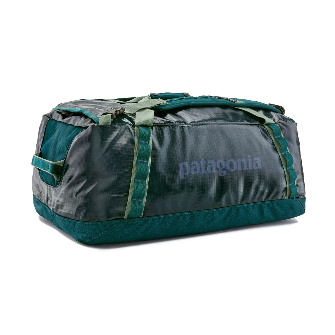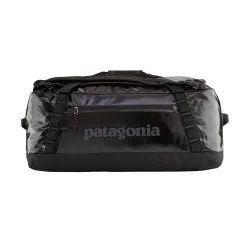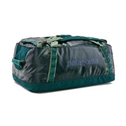 The mid-sized Black Hole 55L duffel bag is highly weather-resistant, stubbornly tough and protects your gear from travel and rough handling. The main compartment opens via a zippered U-shaped lid, which has a pair of zip-closing mesh pockets on the underside for easily lost items like earbuds and a phone charger. A zippered exterior pocket holds all the stuff you need to access quickly. The padded bottom panel adds structure and helps cushion the load when your duffel gets the baggage-handler treatment. Carrying options include padded, removable shoulder straps, webbing handles with a snap closure and haul loops at either end for linking multiple bags. Daisy chains let you lash additional gear to the outside. This Patagonia travel bag is made from burly, 900-denier 100% postconsumer recycled polyester ripstop with a TPU-film laminate and lined with 200-denier 100% recycled polyester with a polyurethane coating. Both fabrics have a DWR (durable water repellent) finish.