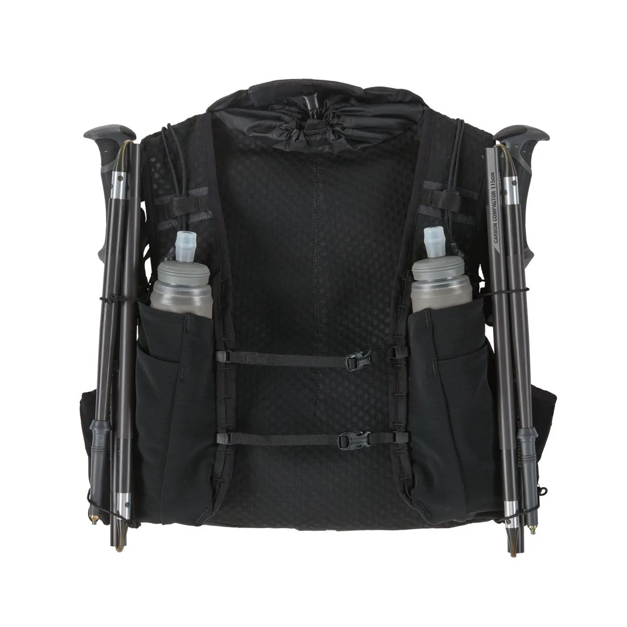 Four chest-harness pockets and numerous expanding and static storage options on the pack’s backside carry a variety of gear to handle a wide range of terrain